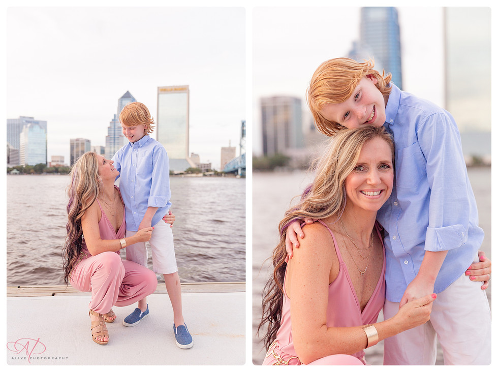 Allison reached out to me after she saw a session I did for her sister and brother-in-law, Laure and Rob, in Gainesville. She loved my bright and airy style so much she asked if I can do theirs too. After exchanging some more emails, asking her a few more questions, seeing some samples of what poses she likes, discuss what she was hoping to accomplish with our session, and picking outfits, we decided to have the session in downtown Jacksonville. She put so much thoughts into preparing for the session and I appreciated it so much. She coordinated the perfect outfit from head to toes, made sure everyone had time to rest, and that they all had something to eat before the session. I couldn't ask for a better way to prepare because HANGRY is not something that goes well with pictures :) Nature did throw us some gusts of wind that makes hair flies but we made it work. We had a beautiful and peaceful evening by the waterfront.